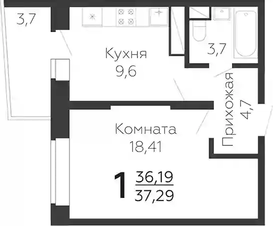 6 803 421 ₽1-к.квартира, 37.06 м², 18 эт.