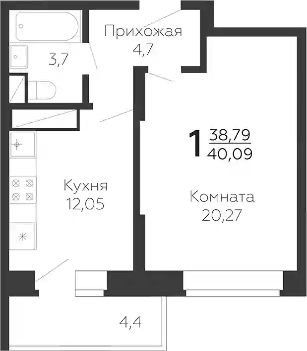 7 531 466 ₽1-к.квартира, 40.77 м², 18 эт.