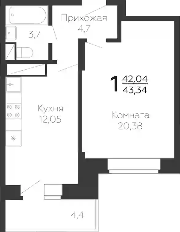 6 462 800 ₽1-к.квартира, 41.8 м², 3 эт.