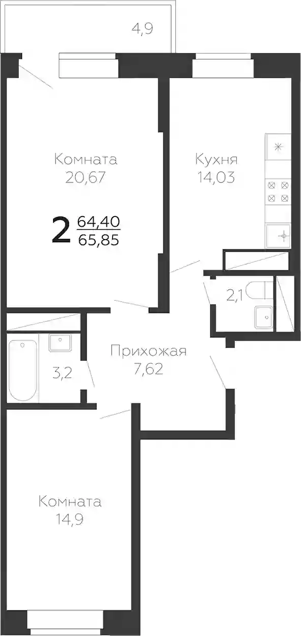 10 964 233 ₽2-к.квартира, 64.03 м², 20 эт.