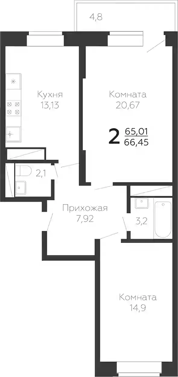 11 273 796 ₽2-к.квартира, 65.16 м², 20 эт.