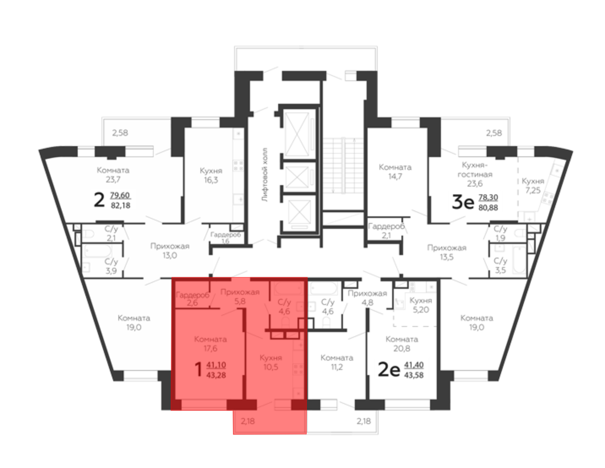 6 462 800 ₽1-к.квартира, 41.8 м², 17 эт.