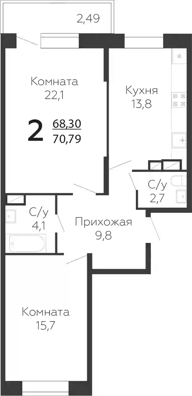 2-к.квартира, 68.3 м², 22 эт. в ЖК Онегин Корпус 1Б