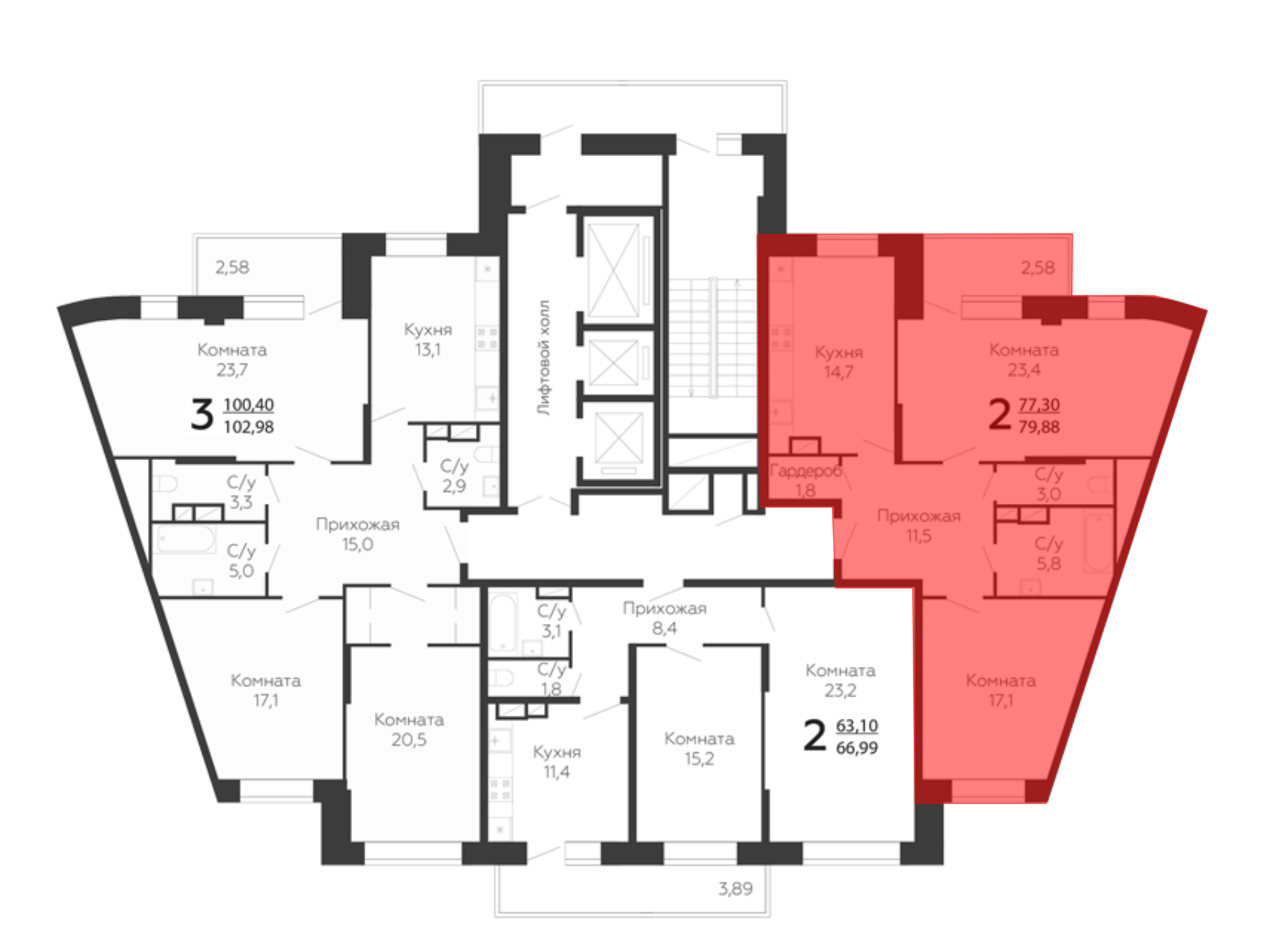 12 960 480 ₽3-к.квартира, 80.52 м², 18 эт.