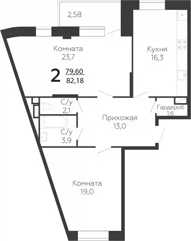 2-к.квартира, 79.6 м², 16 эт. в ЖК Онегин Корпус 1Б