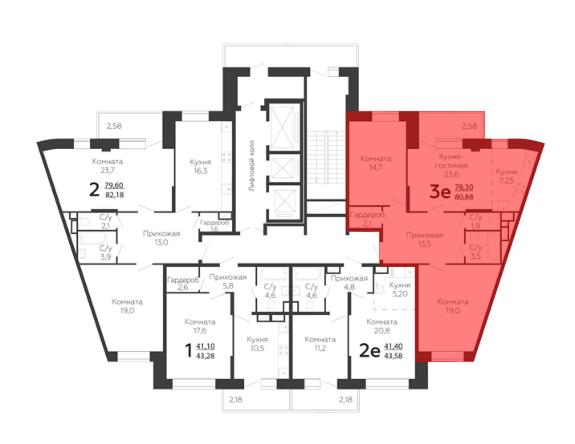 3-к.квартира, 78.3 м², 17 эт. в ЖК Онегин Корпус 1Б