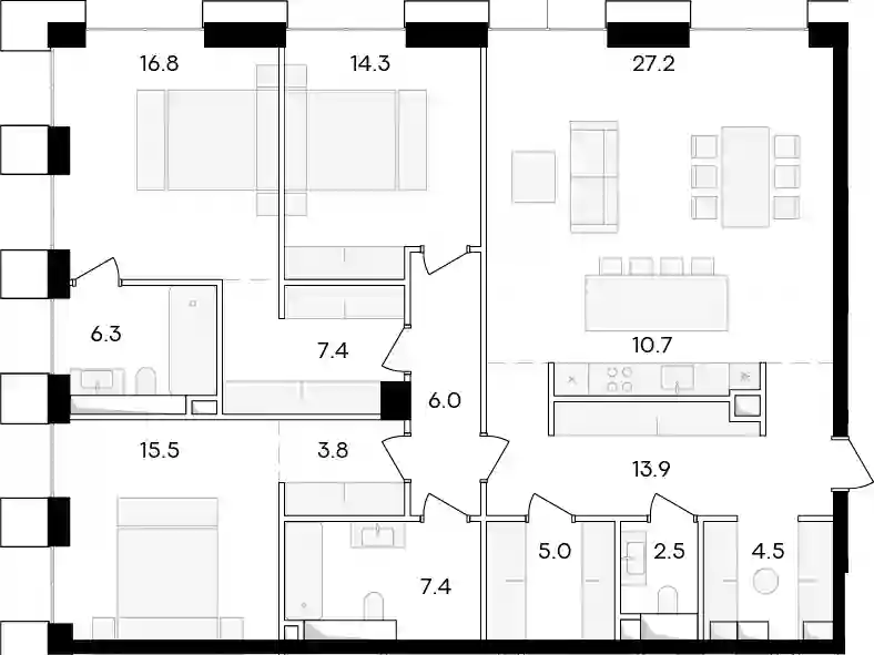 В квартале предложен широкий выбор квартир с увеличенной до 7,65 метра высотой потолков, пентхаусов с террасами, дровяными каминами и потолками высотой до 8,25 м. Есть варианты со вторым светом и возможностью обустройства второго этажа. В наличии квартиры High Level на предпоследнем этаже, с возможностью обустроить дровяной камин. Есть квартиры с террасами в уровень этажа, лоты с панорамными окнами, индивидуальными балконами и моллированным остеклением. Все квартиры сдаются без отделки.