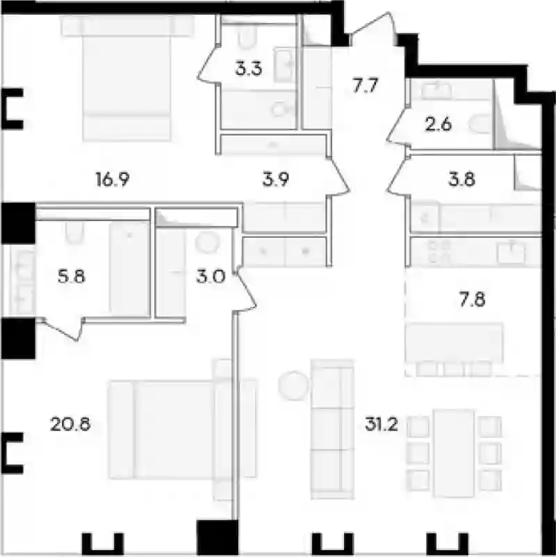 4-к.квартира, 106.7 м², 21 эт. в ЖК ONEST Корпус D