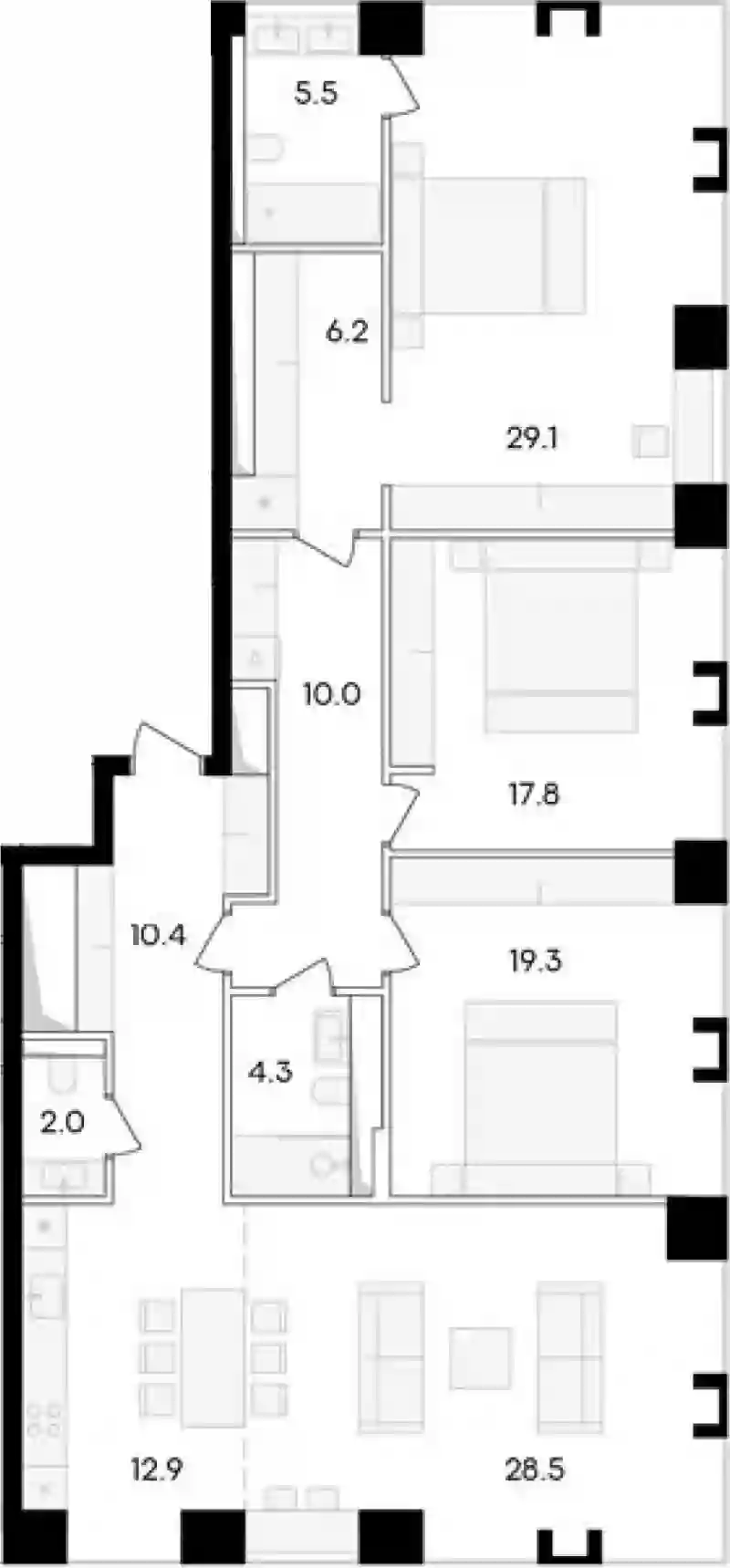 4-к.квартира, 146 м², 13 эт. в ЖК ONEST Корпус D