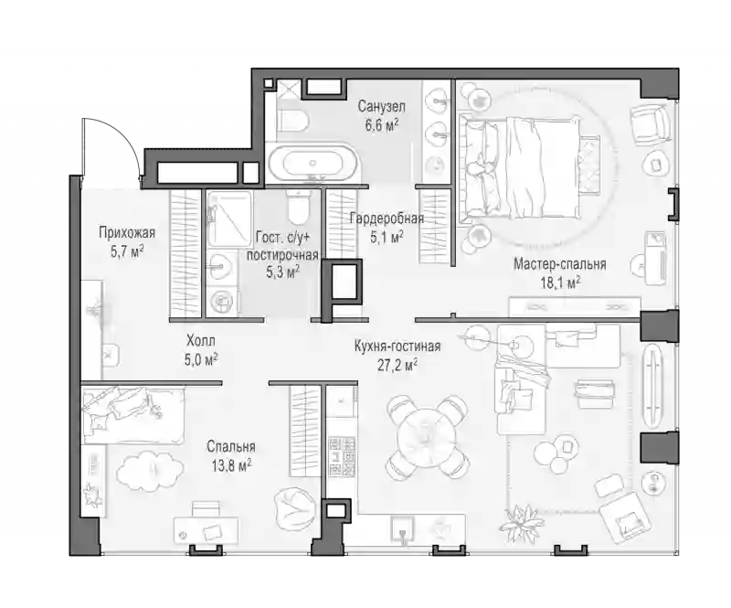 3-к.квартира, 86.9 м², 19 эт. в ЖК ONEST Корпус F