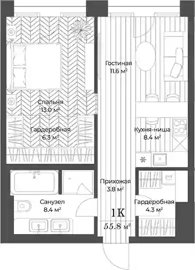 55.8 м2