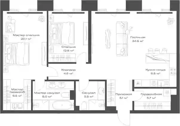 3-к.квартира, 110 м², 4 эт. в ЖК Opus Корпус 1