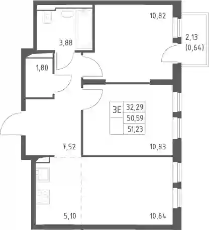 18 529 280 ₽3-к.квартира, 50.59 м², 9 эт.