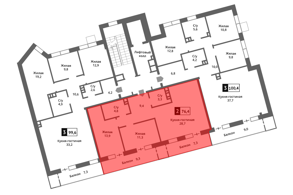 29 330 321 ₽4-к.квартира, 100.98 м², 3 эт.