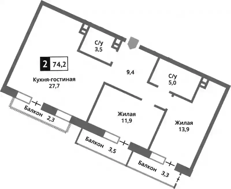 23 118 499 ₽3-к.квартира, 72.17 м², 2 эт.