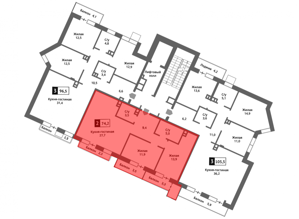 25 681 226 ₽4-к.квартира, 94.58 м², 3 эт.