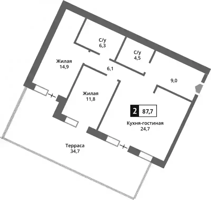 24 977 215 ₽4-к.квартира, 95.11 м², 2 эт.