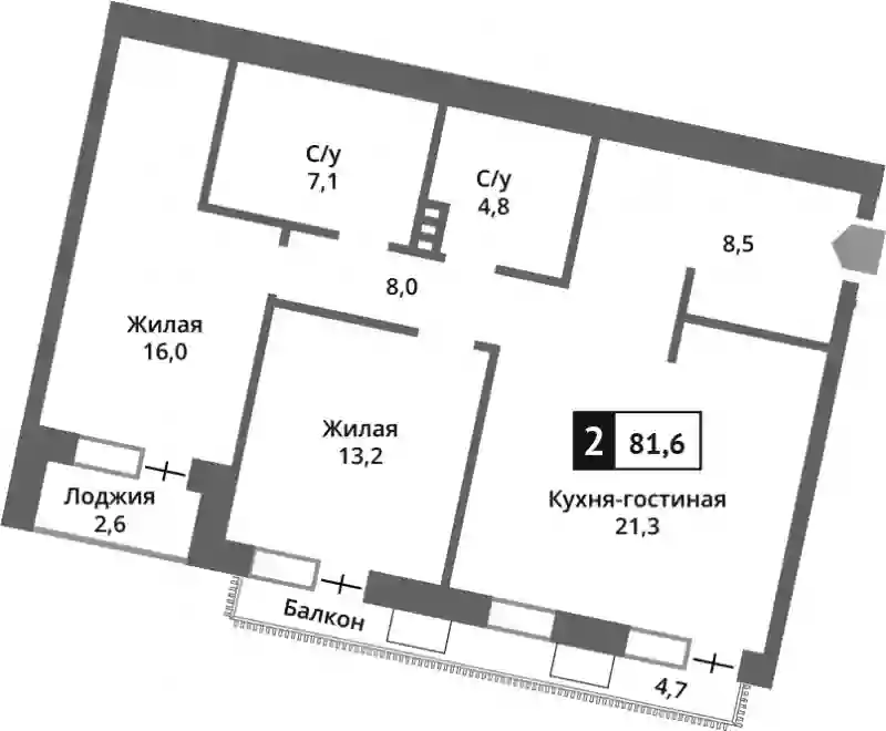 Все квартиры в комплексе выполнены в формате европланировок с просторными кухнями-гостиными и приватными спальнями. В части квартир балконы и лоджии остеклены, но есть также и варианты квартир с французскими балконами без остекления. Часть квартир выполнены в формате Лаунж Флэт с собственными террасами патио. На отдельной территории спроектированы дуплексы и индивидуальные жилые дома. Все квартиры в комплексе сдаются без отделки. Высота потолков в квартирах варьируется от 2,96 до 3,71 метра, а из окон открываются виды на реку.