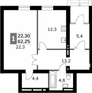 15 577 920 ₽1-к.квартира, 62.25 м², 1 эт.