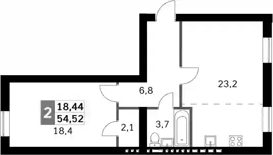 11 368 426 ₽2-к.квартира, 54.44 м², 1 эт.