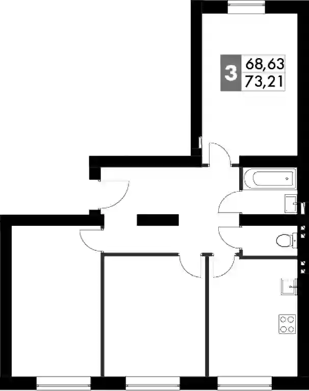 3-к.квартира, 73.43 м², 4 эт. в ЖК Парк Апрель Корпус 46