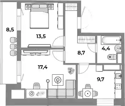 Квартиры в комплексе «Парк Легенд» предлагаются в двух вариантах дизайнерской отделки — светлый с жемчужно-бежевые оттенками и темный с дымчатыми оттенками и элементами лофта. В каждой из них устанавливаются кухонная мебель и бытовая техника от Bosch и Candy. За климат в помещениях ответственны сплит-системы Gree.