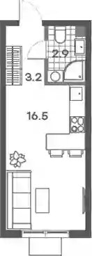 Студия, 22.6 м², 21 эт. в ЖК ПаркСайд Корпус 2