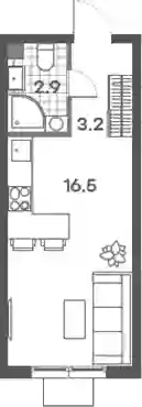 Студия, 22.6 м², 22 эт. в ЖК ПаркСайд Корпус 2