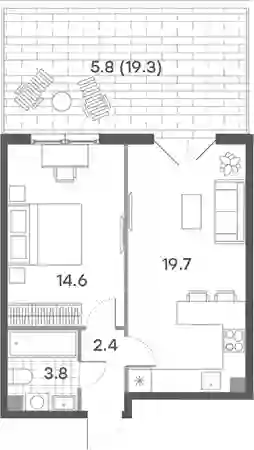 22 225 392 ₽2-к.квартира, 42.84 м², 2 эт.