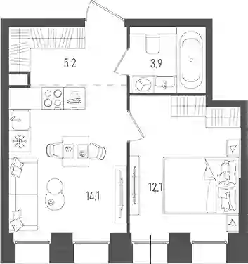 17 399 900 ₽1-к.квартира, 37.1 м², 3 эт.