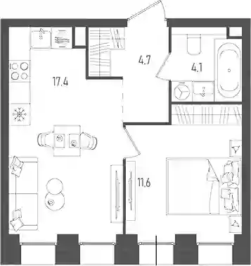 20 042 415 ₽1-к.квартира, 41.1 м², 17 эт.