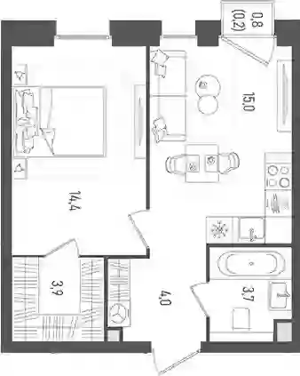 2-к.квартира, 41 м², 15 эт. в ЖК Pave Корпус 1