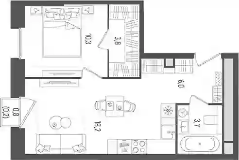 2-к.квартира, 42 м², 15 эт. в ЖК Pave Корпус 1