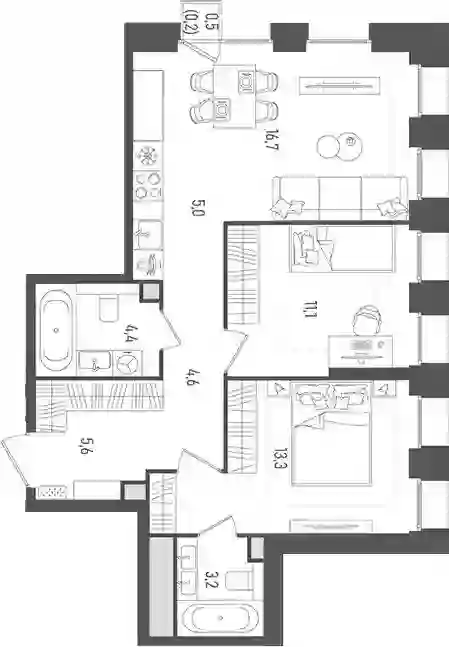 3-к.квартира, 63.9 м², 15 эт. в ЖК Pave Корпус 1