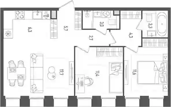 34 263 629 ₽3-к.квартира, 63.9 м², 15 эт.
