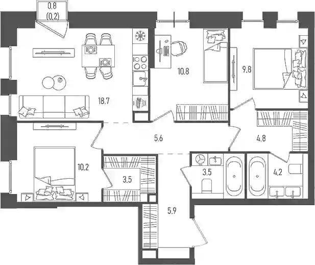 43 875 795 ₽4-к.квартира, 95.4 м², 12 эт.