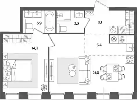32 556 687 ₽3-к.квартира, 60.7 м², 14 эт.