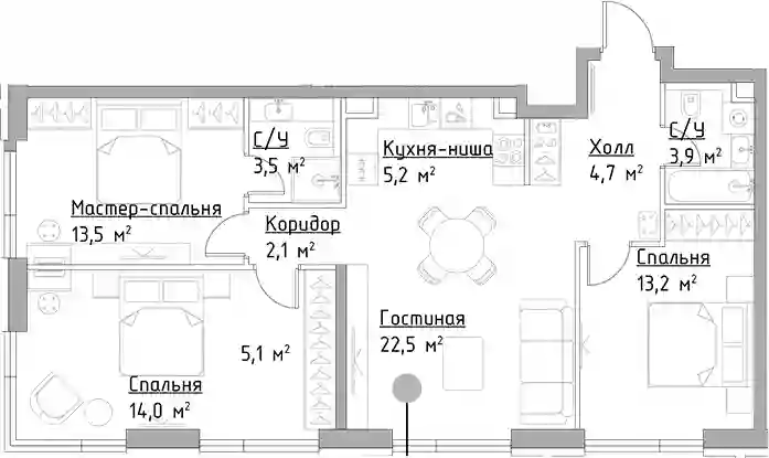 4-к.квартира, 87.7 м², 20 эт. в ЖК Павелецкая Сити Корпус 14