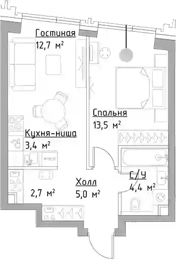 24 665 604 ₽2-к.квартира, 42 м², 15 эт.
