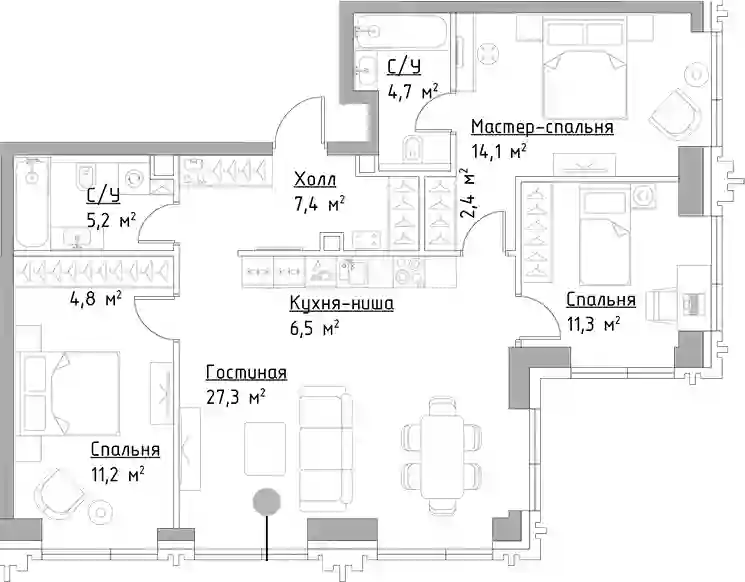 В комплексе предложено множество планировочных решений: в наличии квартиры, как классического типа, так и европланировки. Квартиры сдаются с подчистовой отделкой, высотой потолков 3 м и панорамным остеклением в пол.