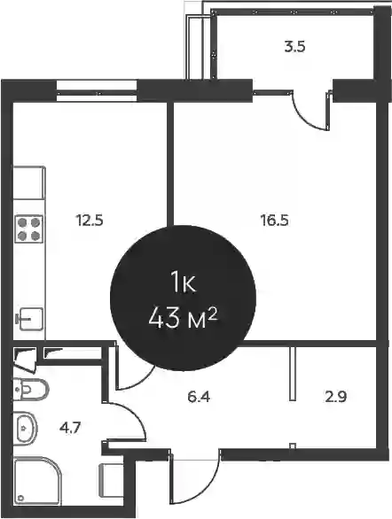 11 355 659 ₽1-к.квартира, 43 м², 3 эт.