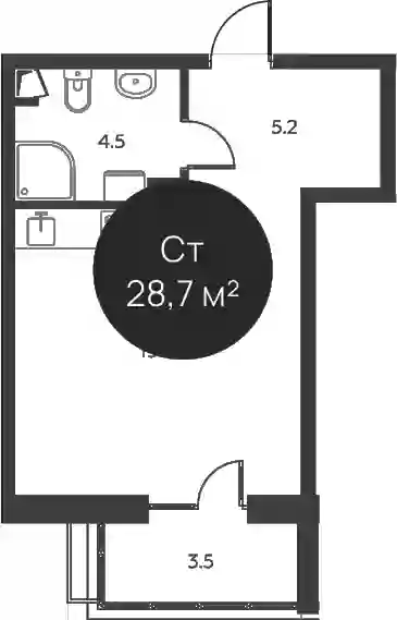 7 707 345 ₽Студия, 28.7 м², 3 эт.