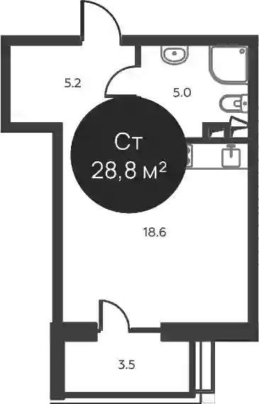 7 733 208 ₽Студия, 28.8 м², 2 эт.