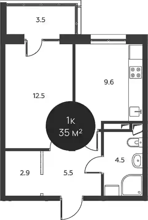 9 659 902 ₽1-к.квартира, 35 м², 3 эт.