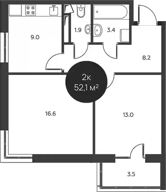 13 337 833 ₽2-к.квартира, 52.1 м², 3 эт.