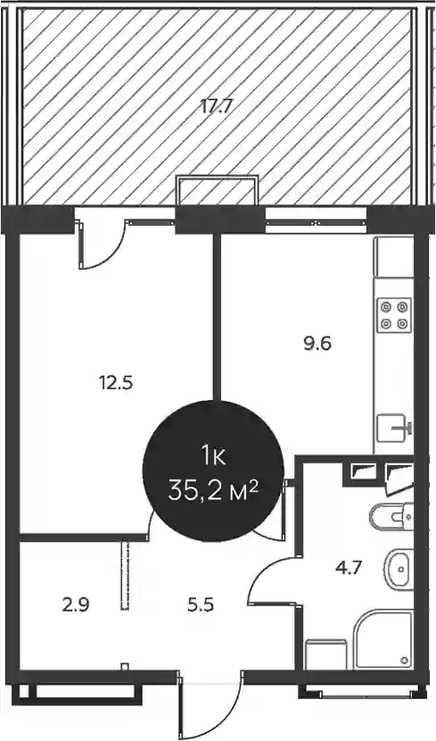 12 300 912 ₽1-к.квартира, 35.2 м², 1 эт.