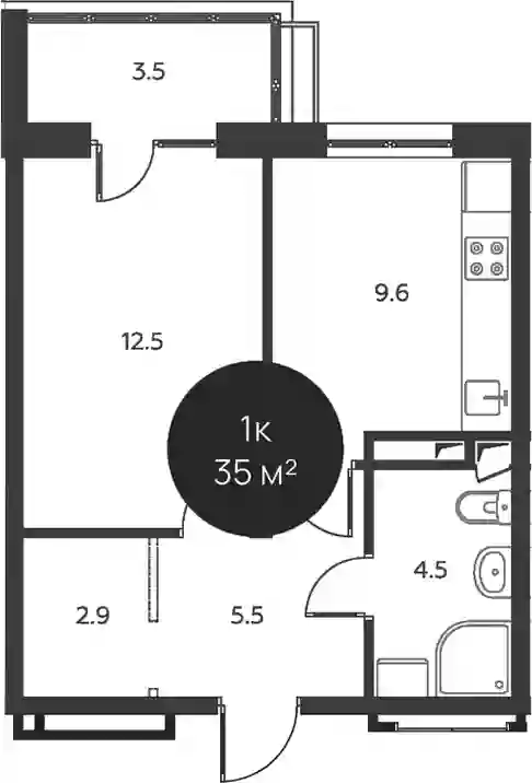 12 300 912 ₽1-к.квартира, 35.2 м², 1 эт.