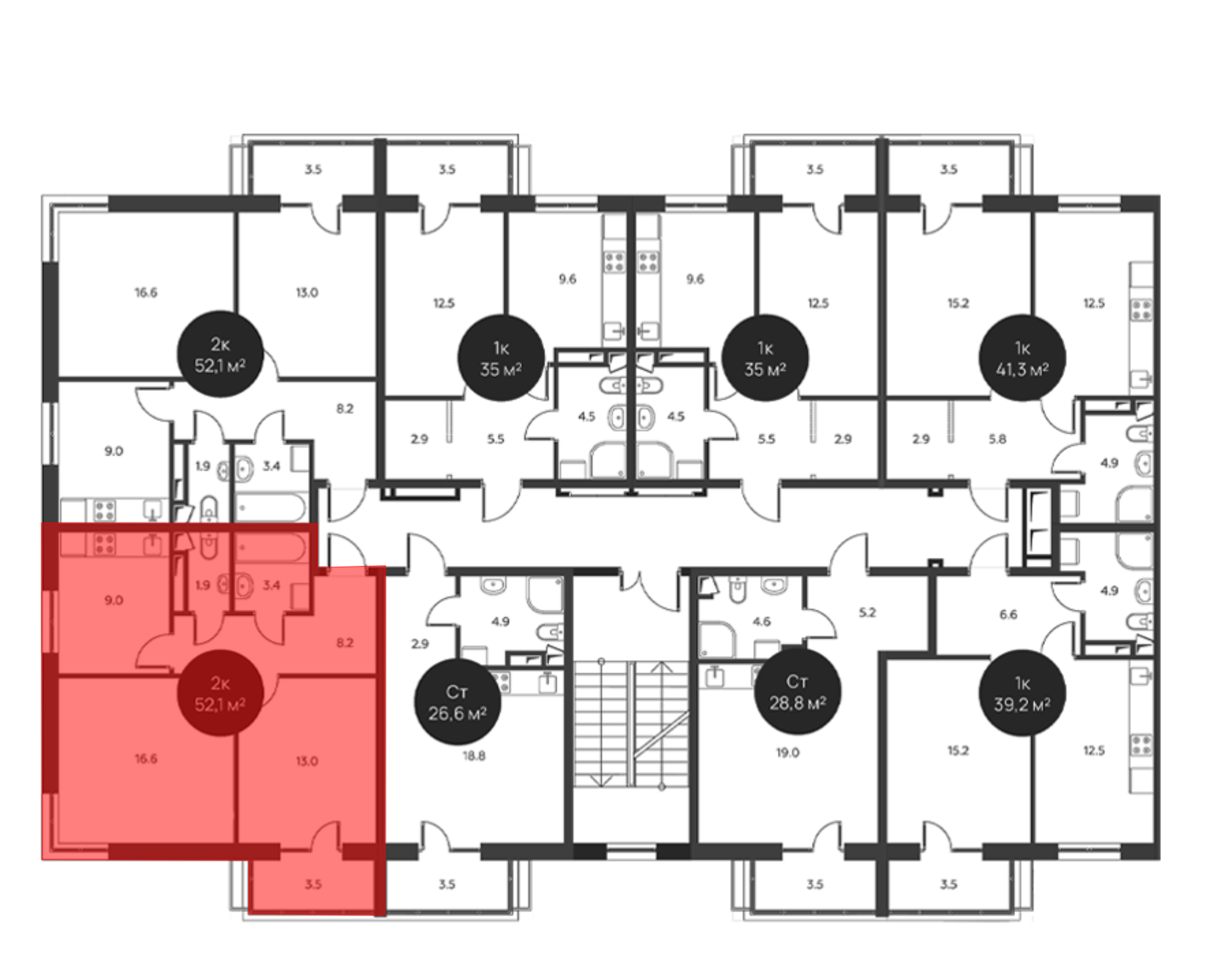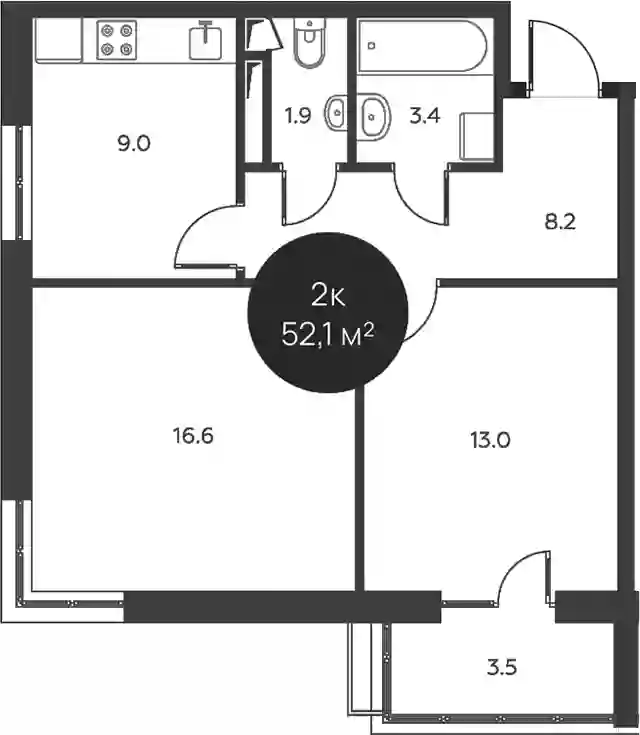 13 056 104 ₽2-к.квартира, 52.1 м², 3 эт.