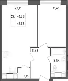 2-к.квартира, 41.66 м², 26 эт. в ЖК Перец Корпус 1