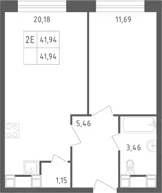 13 907 488 ₽2-к.квартира, 42.31 м², 18 эт.
